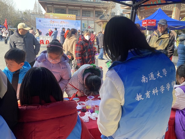 早春三月,阳光和煦,濠西书苑广场上热闹非凡、人头攒动,多支志愿服务摊点发挥所长开展各具特色的便民服务。为了更好的服务社区居民,南通388vip太阳集团的志愿者们早早来到服务点,拿出提前准备好的画笔、颜料、手工材料,结合自身专业,为广大市民提供心理咨询和家庭教育服务。